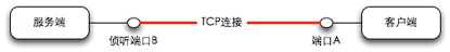 如上图所示,客户端创建一个 Socket ,使用端口 A ,连接服务端的侦听端口 B ,从而创建一个 TCP 连接。